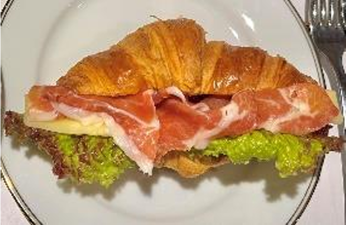 当店で焼き上げたクロワッサンに切りたての生ハムとチーズを