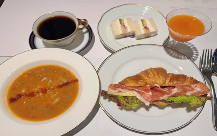 croissants, accompanied by a delicious, mild vegetable soup.(Drinks included)